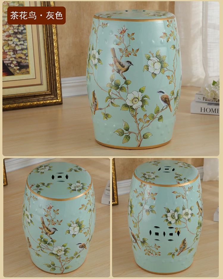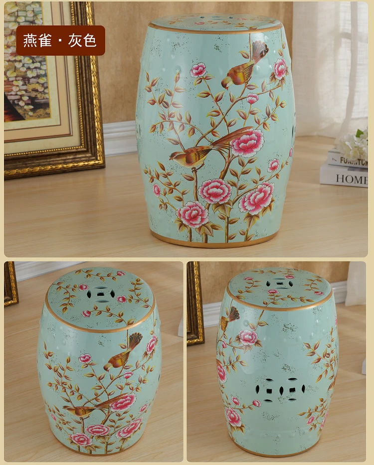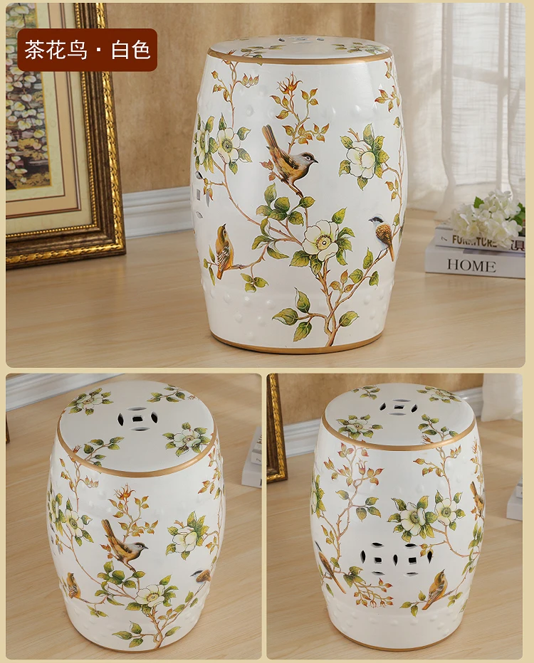 Ceramic Shoe Stool Creative Euro Small Shoe Stools For Hallway Living Room Flower Bird Drum Dressup Stool Home Furniture